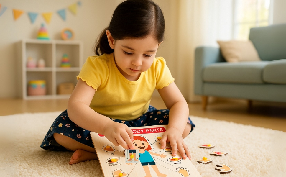 By interacting with the body parts puzzle, children are introduced to biological concepts like organs, muscles, and bones in a way that makes learning accessible and fun.