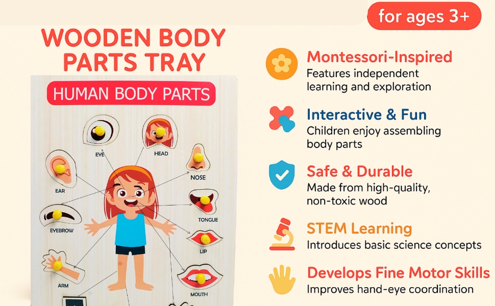🧠 Inspire a love for learning and exploration with Metclap’s Body Parts Tray! This educational toy is designed to captivate young minds through interactive play and hands-on discovery. Perfect for children who are curious about the human body, this Body Parts Tray encourages learning through play, fostering an early understanding of anatomy in a fun, engaging way.