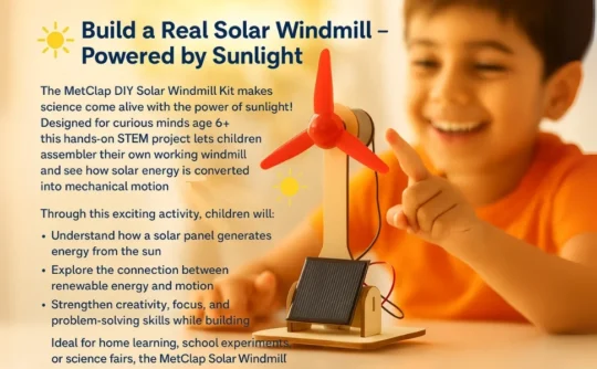 Looking for a birthday gift, return gift, or school project idea? The Solar Windmill Kit is a top choice for parents who want their children to engage in screen-free, meaningful play. It is lightweight, portable, and safe for kids, making it a favorite for both learning at home and science exhibitions.